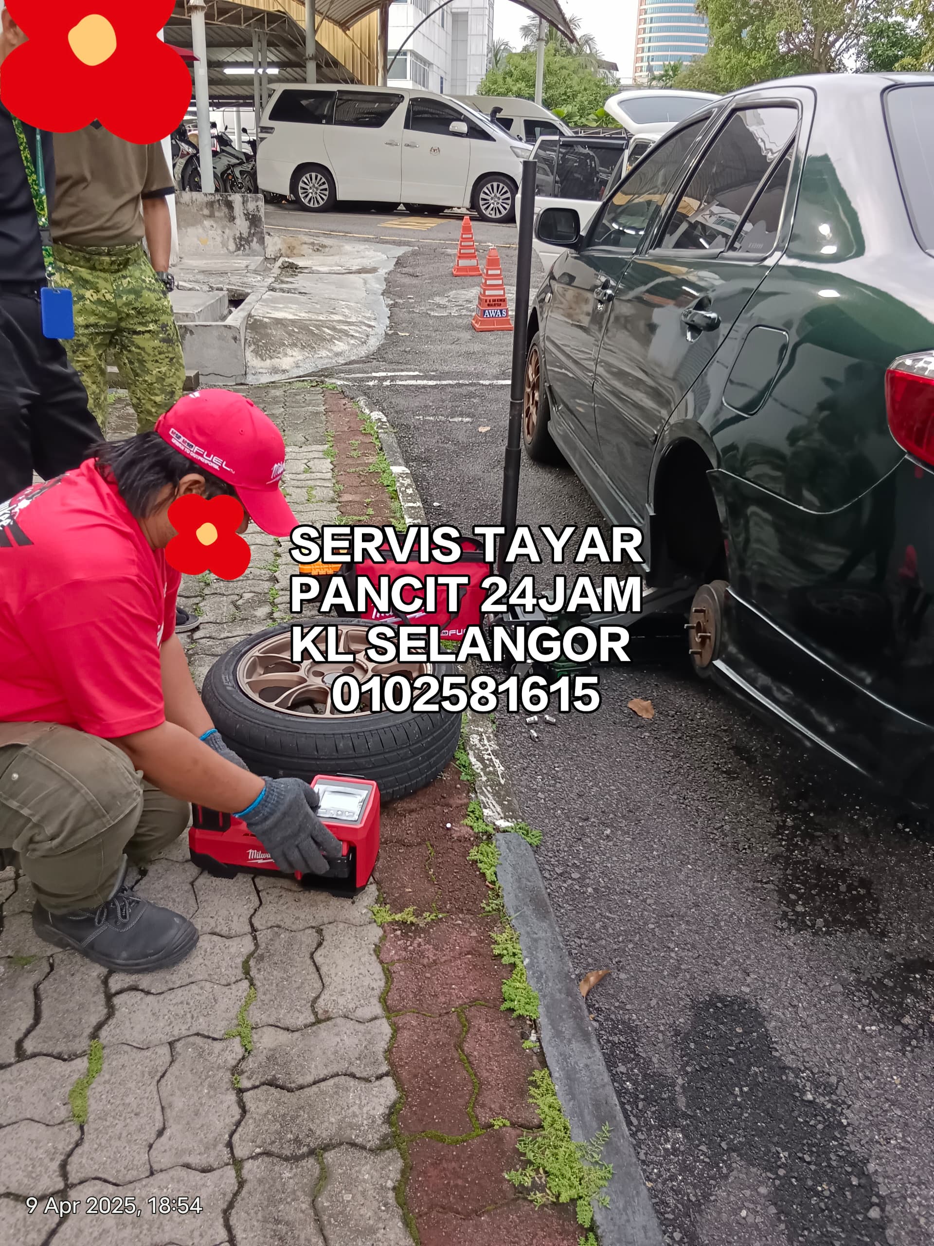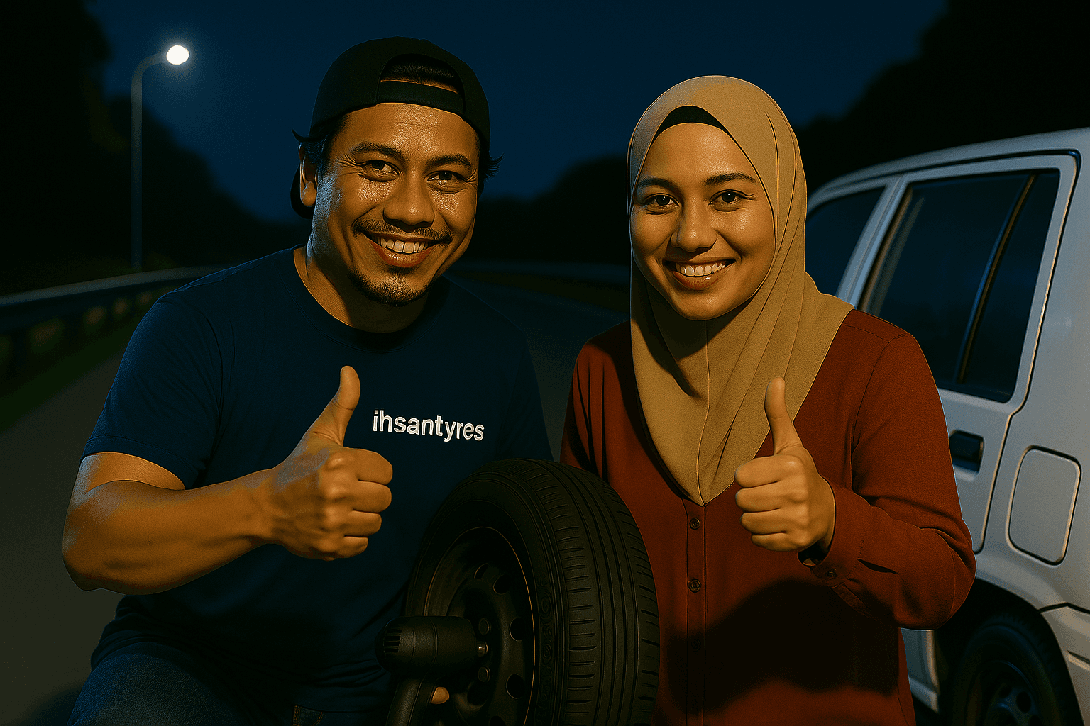 Anda hubungi kami melalui WhatsApp atau telefon. Kami bersedia 24 jam untuk menerima pesanan kecemasan tayar.